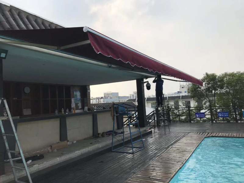 伸縮遮陽雨篷收縮自如,遮陽效果好,可自由調節角度。